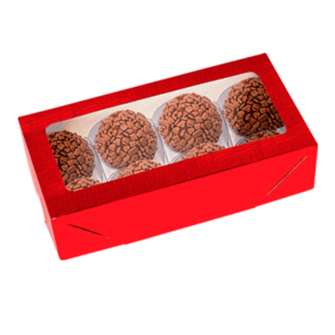A Caixa Laminada Com Visor Para 8 Doces Vermelha é uma embalagem sofisticada e prática, desenvolvida para valorizar e proteger seus doces com elegância. Produzida em papel laminado vermelho de alta qualidade, apresenta acabamento resistente e visual atraente, ideal para destacar bombons, trufas, brigadeiros e outras guloseimas. O visor transparente permite total visibilidade do conteúdo sem necessidade de abrir a caixa, proporcionando uma apresentação charmosa e profissional. Com capacidade para 8 doces, é perfeita para lembranças de festas, presentes, casamentos, aniversários e datas comemorativas. Fácil de montar e manusear, combina praticidade, proteção e estilo em cada detalhe. O pacote contém 10 unidades, oferecendo excelente custo-benefício e qualidade para confeiteiros, lojistas e apaixonados por doces. Dimensões do produto: Comprimento: 16cm x Largura: 8cm x Altura: 4cm